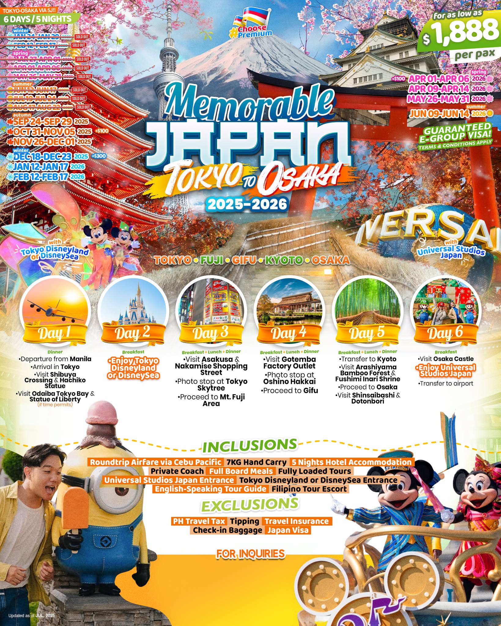 Previous Product Next Product Tokyo to Osaka via 5J 2025-2026 – [6 Days 5 Nights] ₱107,972.83 Tokyo to Osaka via 5J 2025-2026 - [6 Days 5 Nights] quantity Add to cart Categories: International Tours, Japan Related products International Tours, JapanAutumn & Winter in Hokkaido 2025 – [8 Days 7 Nights] ₱130,848.43 Add to cart International Tours, SingaporeGreat Singapore 2025-2026 – [4 Days 3 Nights] ₱30,888.00 Add to cart International Tours, South KoreaKorea Winter 2025-2026 – [6 Days 5 Nights] ₱37,888.00 Add to cart
